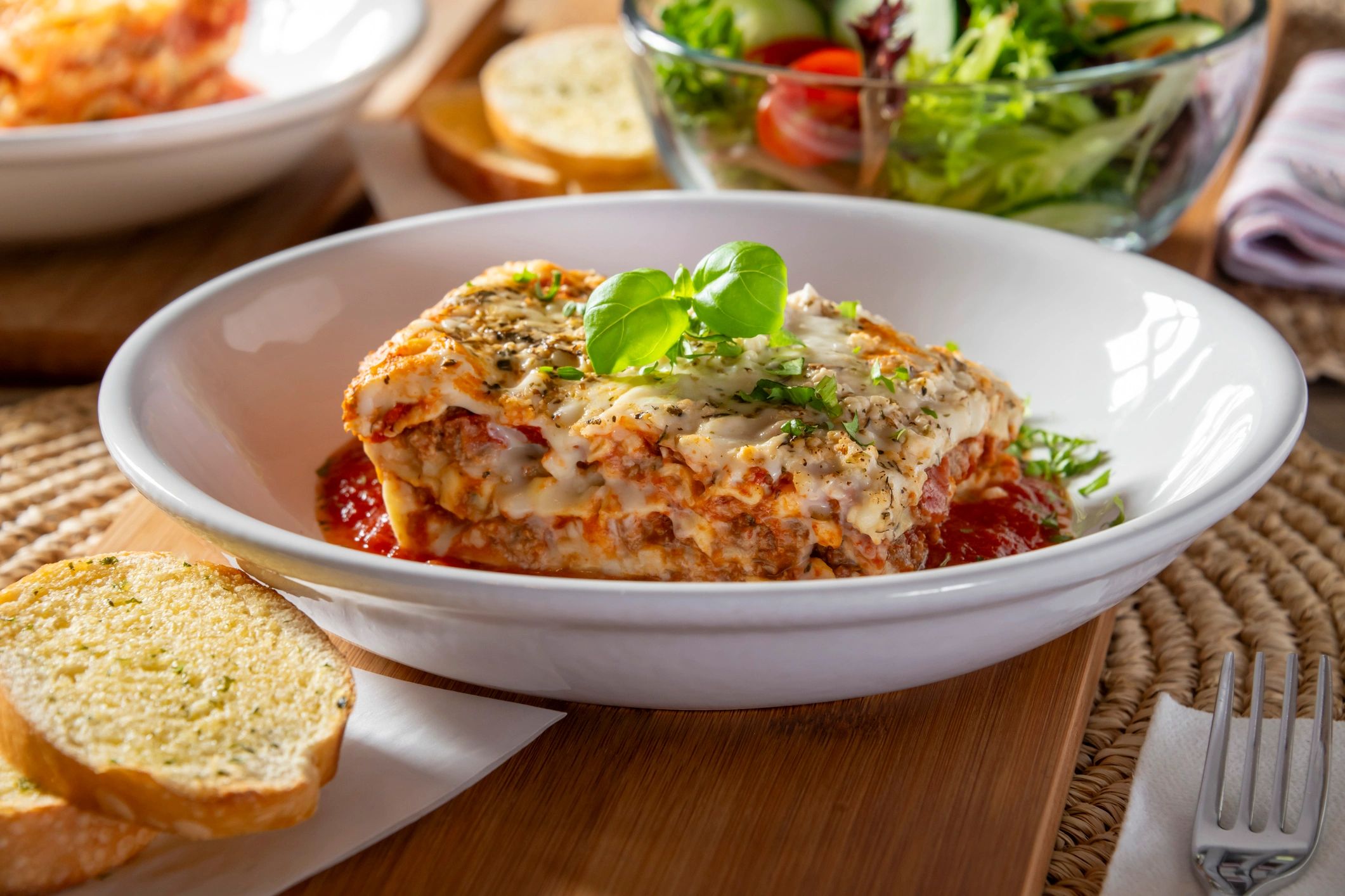 Lasagne Bolognese met rustiek brood en rauwkostsalade